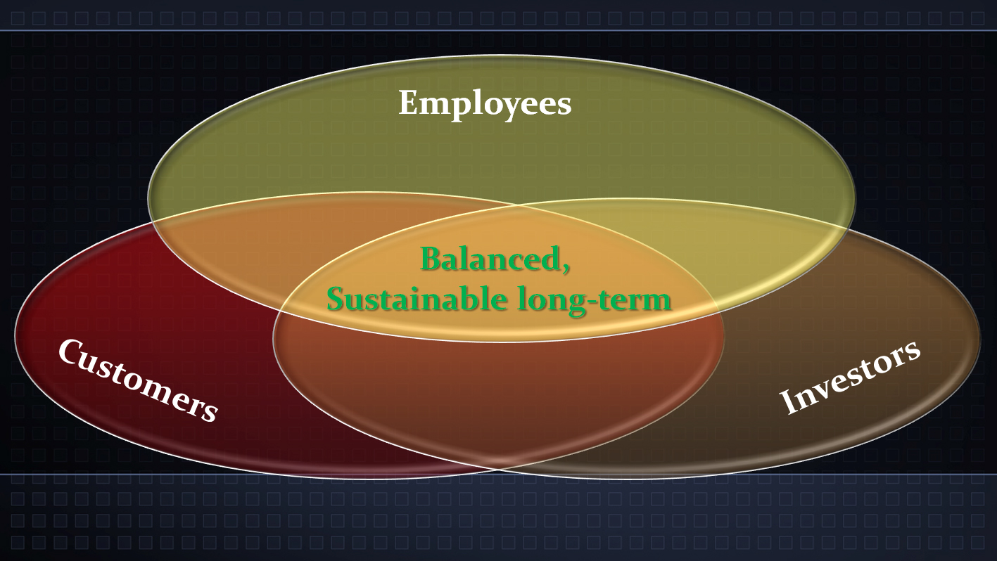 Together, these create a balanced, sustainable business around for the long term dedicated to our mission and vision. These stakeholders aligned with our core values: Quality in our Products, Quality in our Workplace, and Entrepreneurship, where resources and time balance against quality and scope. We also added core values of Humility and Integrity, representing being honest with yourself and with those around you.