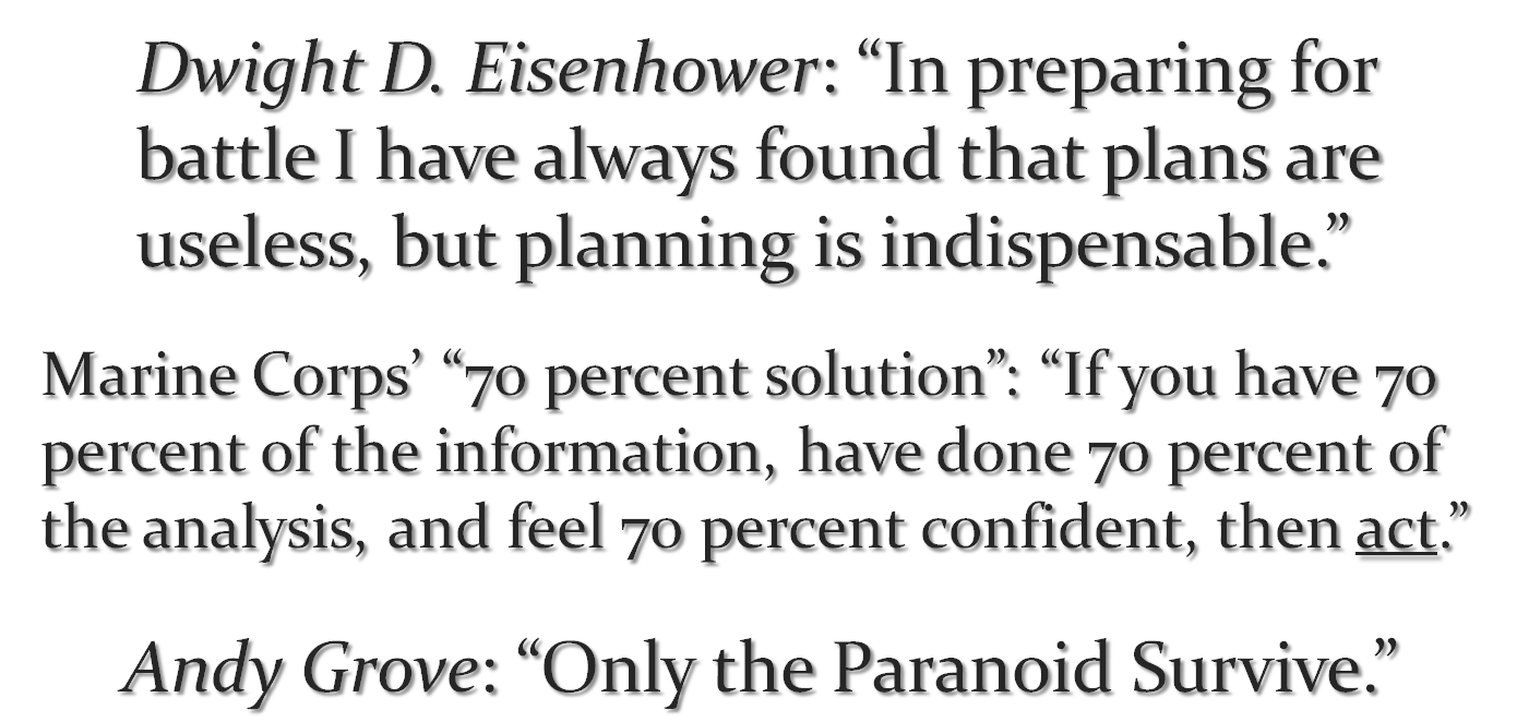 Dwight D. Eisenhower: “In preparing for battle I have always found that plans are useless, but planning is indispensable.”